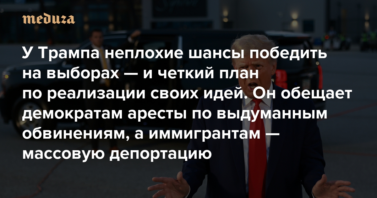 У Трампа неплохие шансы победить на выборах — и четкий план по реализации своих идей Например, он обещает демократам аресты по выдуманным обвинениям, а иммигрантам — массовую депортацию