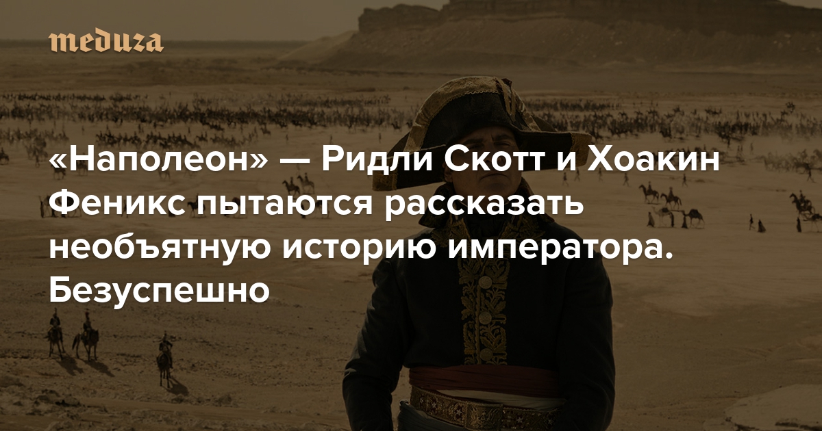 В мировой прокат вышел «Наполеон» Ридли Скотта — эпическое батальное полотно о жизни французского императора (режиссерская версия картины идет четыре часа, в прокате — два с половиной) с Хоакином Фениксом в главной роли. Скотт далеко не первый авторитетный режиссер, который брался за этот материал, но у него, как и у его предшественников, не получилось создать увлекательную историю. Кинокритик Антон Долин рассказывает, что не так с одной из главных кинопремьер года.