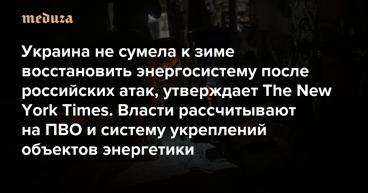Украина не сумела к зиме восстановить энергосистему после российских атак, утверждает The New York Times Власти рассчитывают на ПВО и систему укреплений объектов энергетики