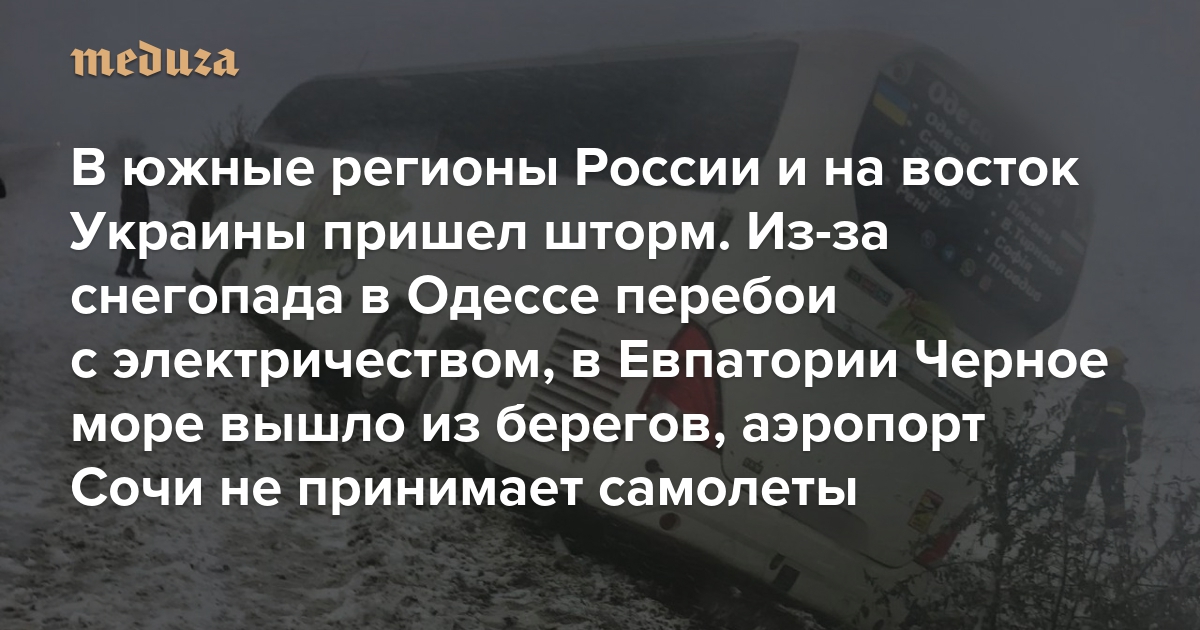 На восток Украины и в приграничные российские регионы 26 ноября пришел шторм. В находящейся под российскими обстрелами Херсонской области снегопад и сильный ветер уже вызвали перебои с электроснабжением. Подача электричества прервана и в десятках населенных пунктов Одесской области. В Краснодарском крае, куда шторм еще полноценно не пришел, шквалистый ветер уже сорвал несколько крыш. Семь самолетов, летевших в Сочи, из-за непогоды ушли на запасные аэродромы Минеральных Вод. Синоптики прогнозируют порывы ветра до 27 метров в секунду и сильные ливни с грозами и градом, которые приведут к подъему уровня воды в реках. Циклон с Черного моря надвигается на Москву, синоптики предполагают, что этот ноябрьский снегопад станет одним из сильнейших в истории погодных наблюдений. «Медуза» собрала фото и видео снежного шторма.