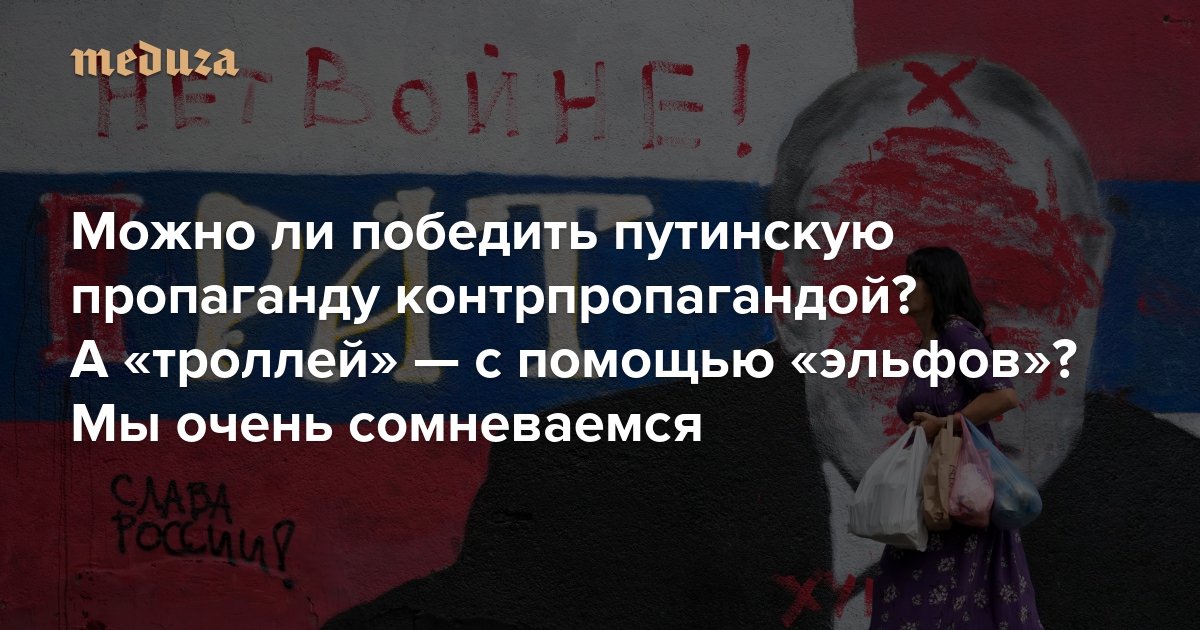 Можно ли победить путинскую пропаганду контрпропагандой? А «троллей» — с помощью «эльфов»? Мы сомневаемся. Ведь пропаганда больше не похожа ни на классические образцы XX века, ни на эхокамеры 2010-х