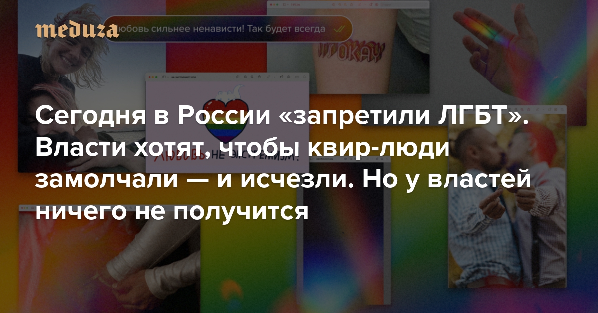 «Когда не станет нас, придут за вами» Сегодня в России «запретили ЛГБТ». Власти хотят, чтобы квир-люди замолчали — и исчезли. Но у властей ничего не получится