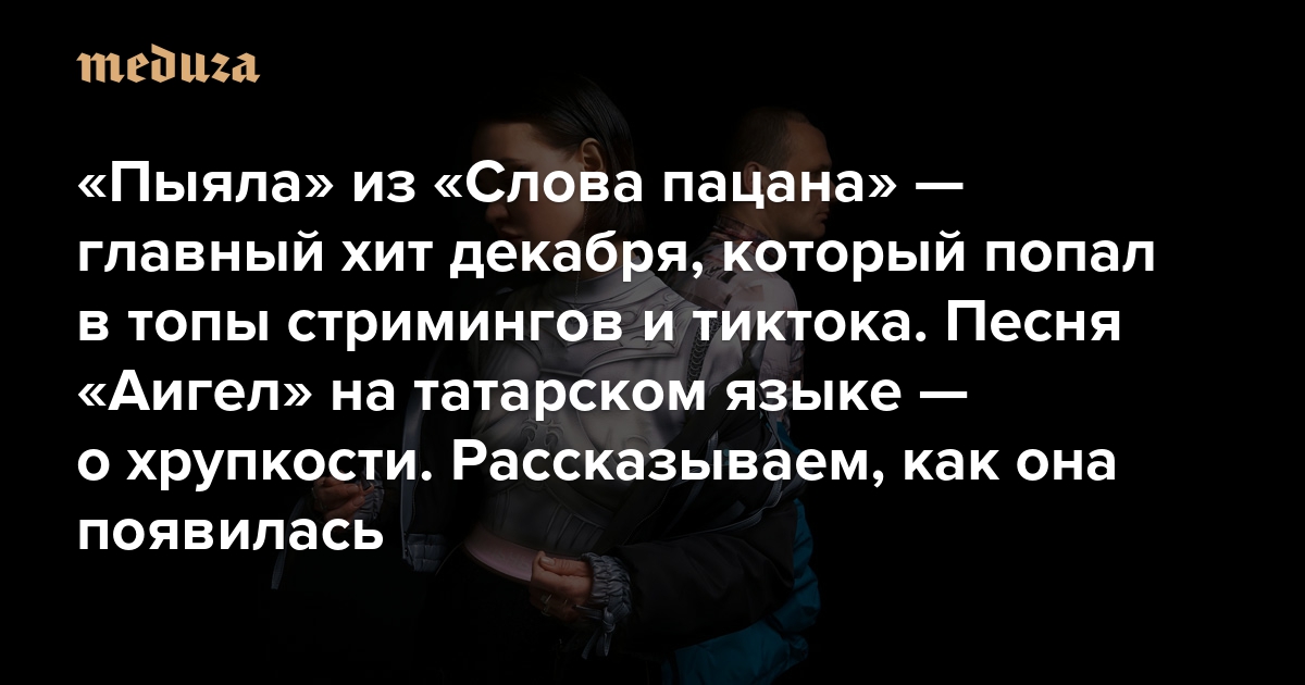 «Пыяла» из «Слова пацана» — главный хит декабря, который попал в топы стримингов и тиктока Песня «Аигел» на татарском языке — о хрупкости. Рассказываем, как она появилась