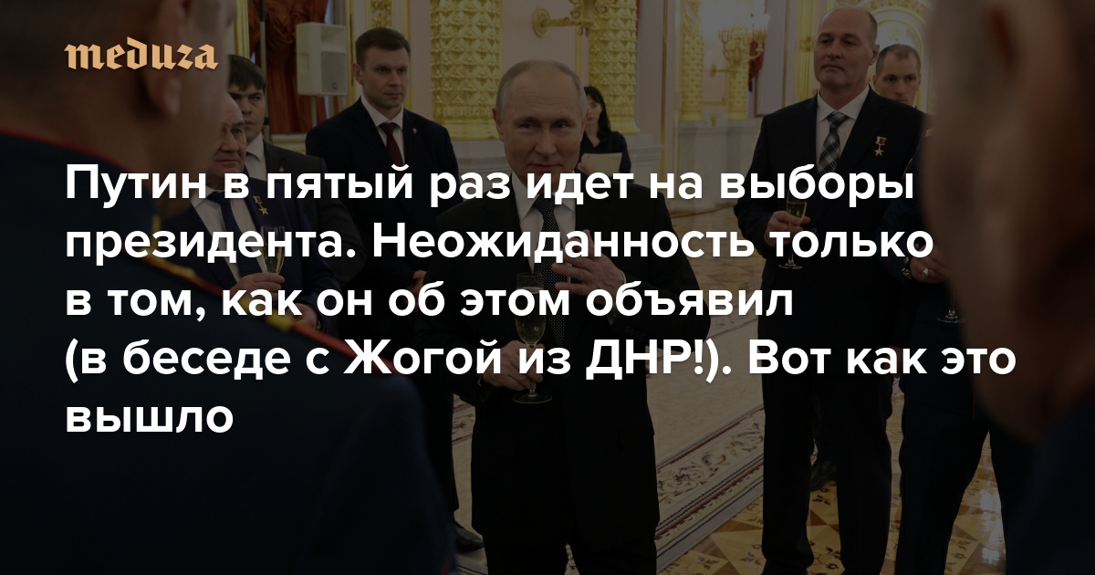 «Так быть не должно. Но президент захотел» Путин в пятый раз идет на выборы президента. Неожиданность только в том, как он об этом объявил (в беседе с Жогой из ДНР!). Вот как это вышло