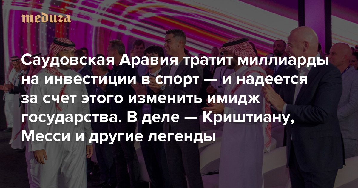 Саудовская Аравия тратит миллиарды долларов на инвестиции в спорт. И надеется за счет этого изменить имидж государства Роналду играет в местном чемпионате, а Месси получает миллионы за поездки в страну. В 2034 году именно там пройдет ЧМ по футболу