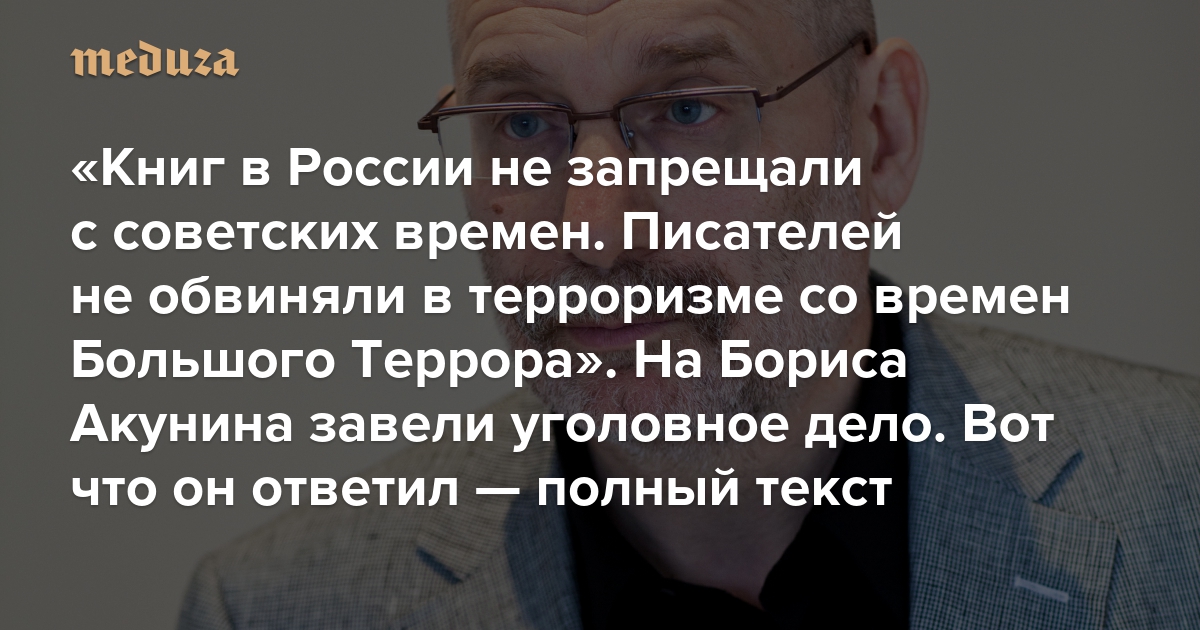«Книг в России не запрещали с советских времен. Писателей не обвиняли в терроризме со времен Большого Террора» На Бориса Акунина завели уголовное дело. Вот что он ответил — полный текст