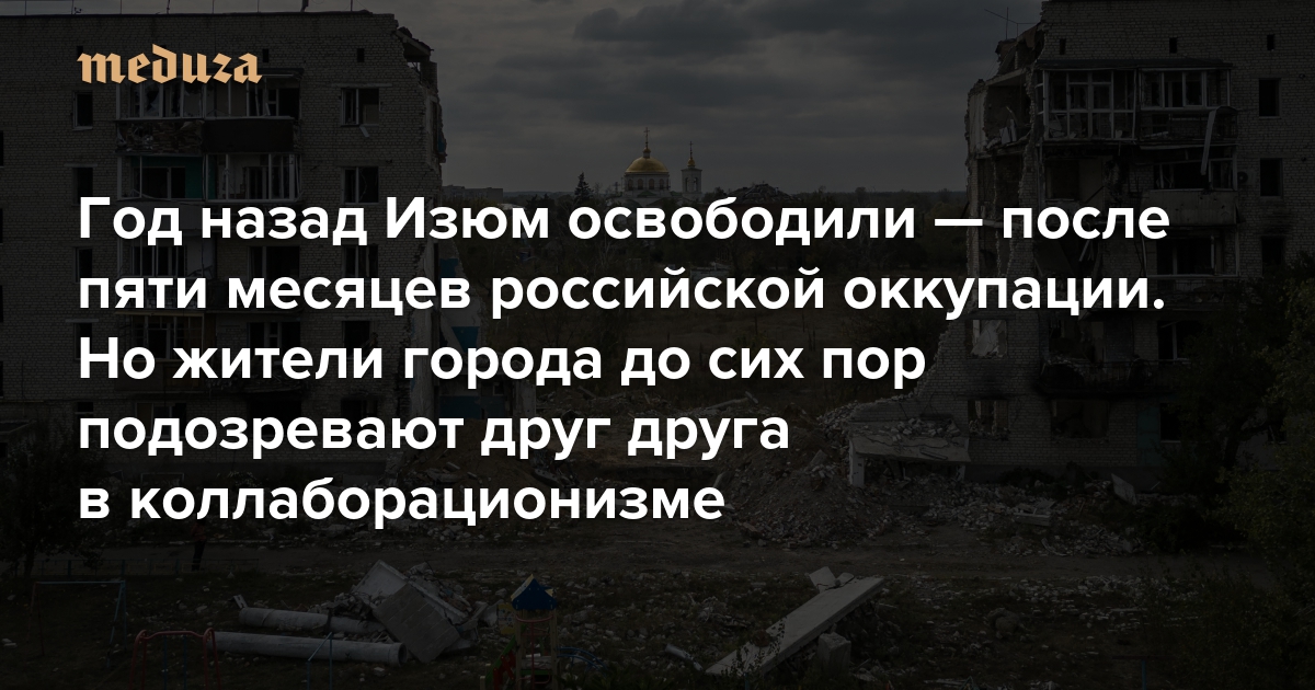 Изюм — город в Харьковской области с населением около 50 тысяч человек. Во время российского вторжения в Украину он подвергся значительным разрушениям: в городе были частично повреждены или полностью уничтожены более пяти тысяч частных и 120 многоквартирных домов. 1 апреля 2022 года российская армия оккупировала Изюм. Минобороны РФ разместило в городе оперативный штаб своей группировки войск и планировало использовать его как основной плацдарм для наступления на Донбасс с севера. Через пять месяцев — в начале сентября — ВСУ в рамках масштабного контрнаступления в Харьковской области освободили Изюм вместе с десятками других населенных пунктов. Вследствие оккупации возникли конфликты между жителями: теперь те, кто успел выехать из города до прихода российских войск, подозревают оставшихся в коллаборационизме. Корреспондент The Guardian Шон Уокер побывал в Изюме и поговорил об этом с его жителями.