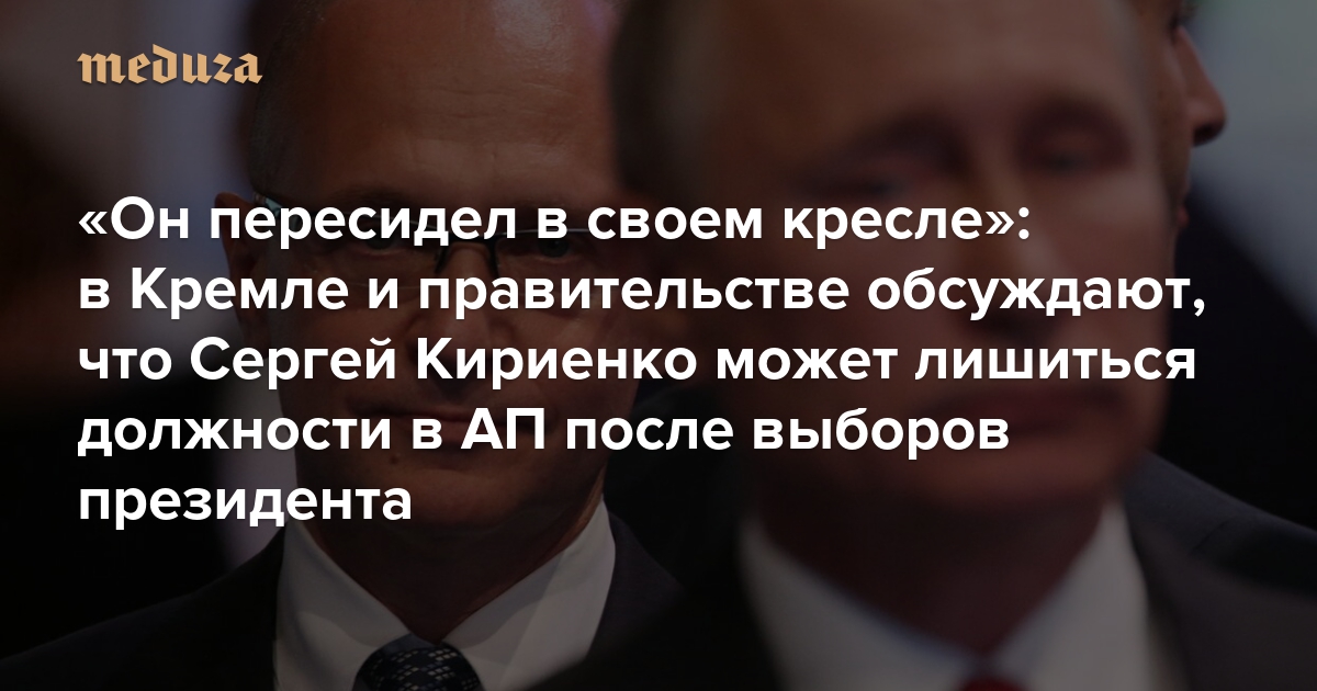«Он пересидел в своем кресле»: в Кремле и правительстве обсуждают, что Сергей Кириенко может лишиться должности в АП после выборов президента Вот что об этом рассказывают источники «Медузы»