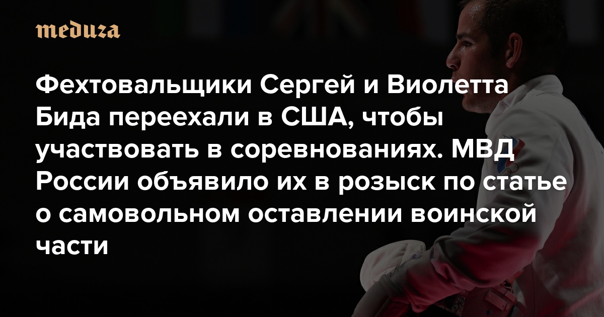 Фехтовальщики Сергей и Виолетта Бида переехали в США, чтобы участвовать в соревнованиях. МВД России объявило их в розыск Спортсменов подозревают в самовольном оставлении воинской части (они числятся в «Динамо» и ЦСКА)