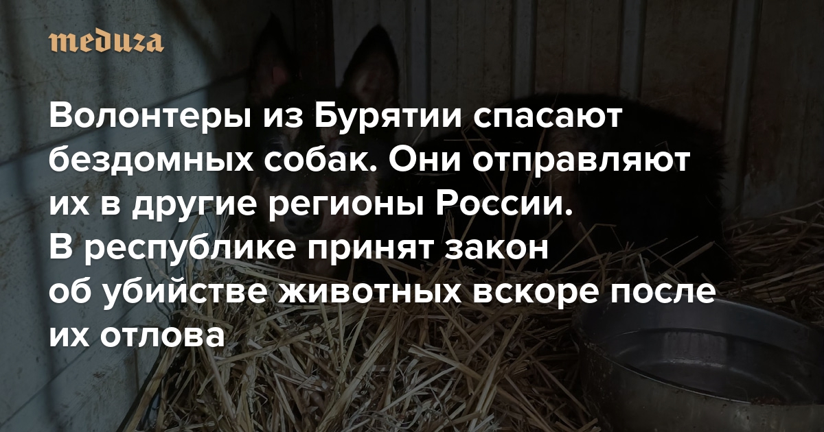 В конце 2023 года несколько российских регионов разрешили убивать бездомных собак вскоре после отлова. Первыми такой закон приняли власти Бурятии, после чего зоозащитники и волонтеры организовали эвакуацию собак из республики в пока еще безопасные регионы, пишет «Медиазона».