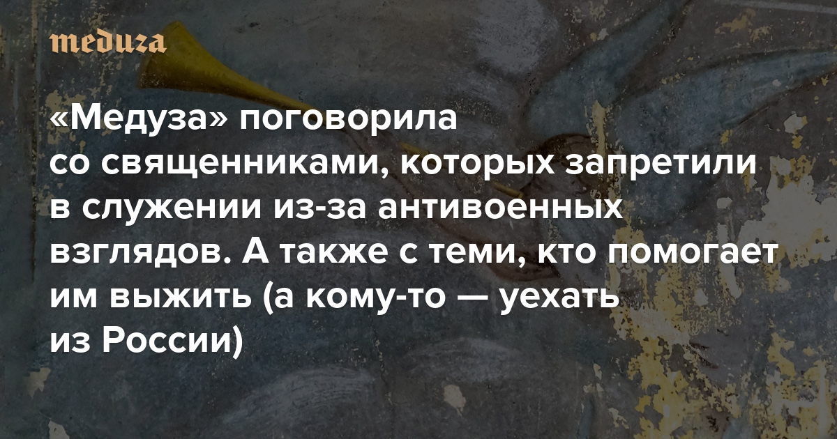 «В моей воскресной школе теперь плетут маскировочные сети для военных» «Медуза» поговорила со священниками, которых запретили в служении из-за антивоенных взглядов. А также с теми, кто помогает им выжить (а кому-то — уехать из России)