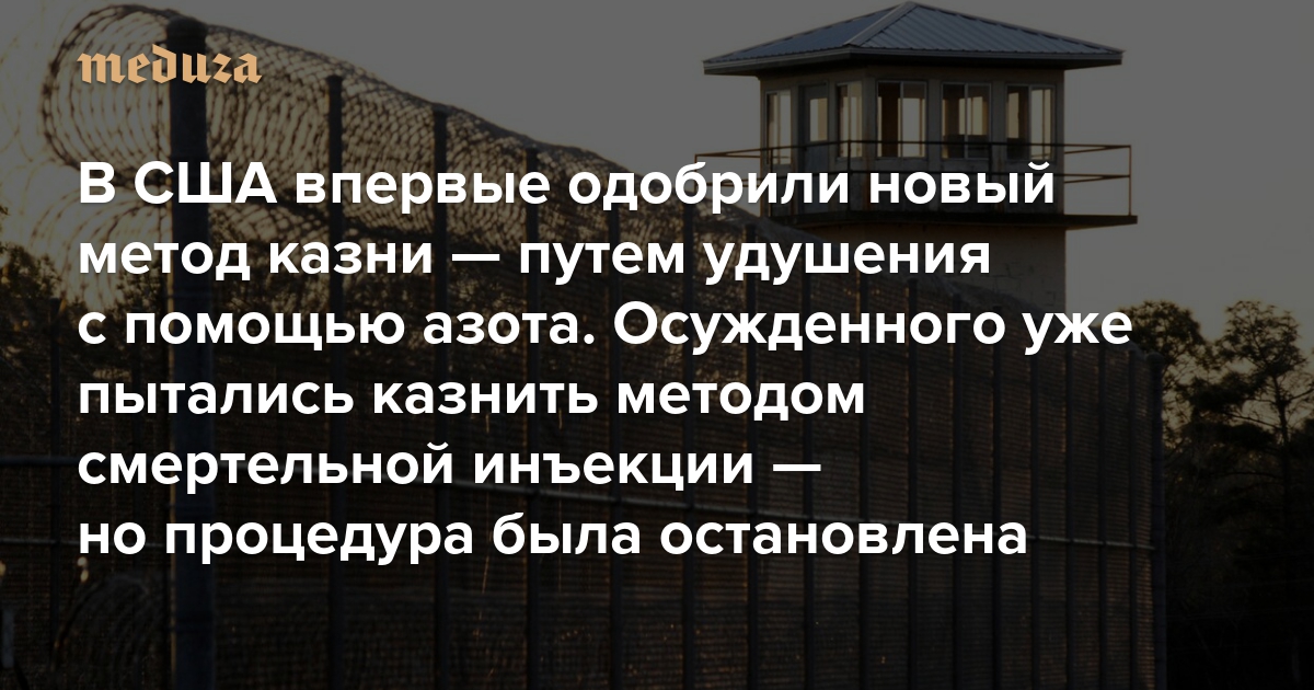 В США впервые одобрили новый метод казни — путем удушения с помощью азота Осужденного уже пытались казнить методом смертельной инъекции — но процедура была остановлена