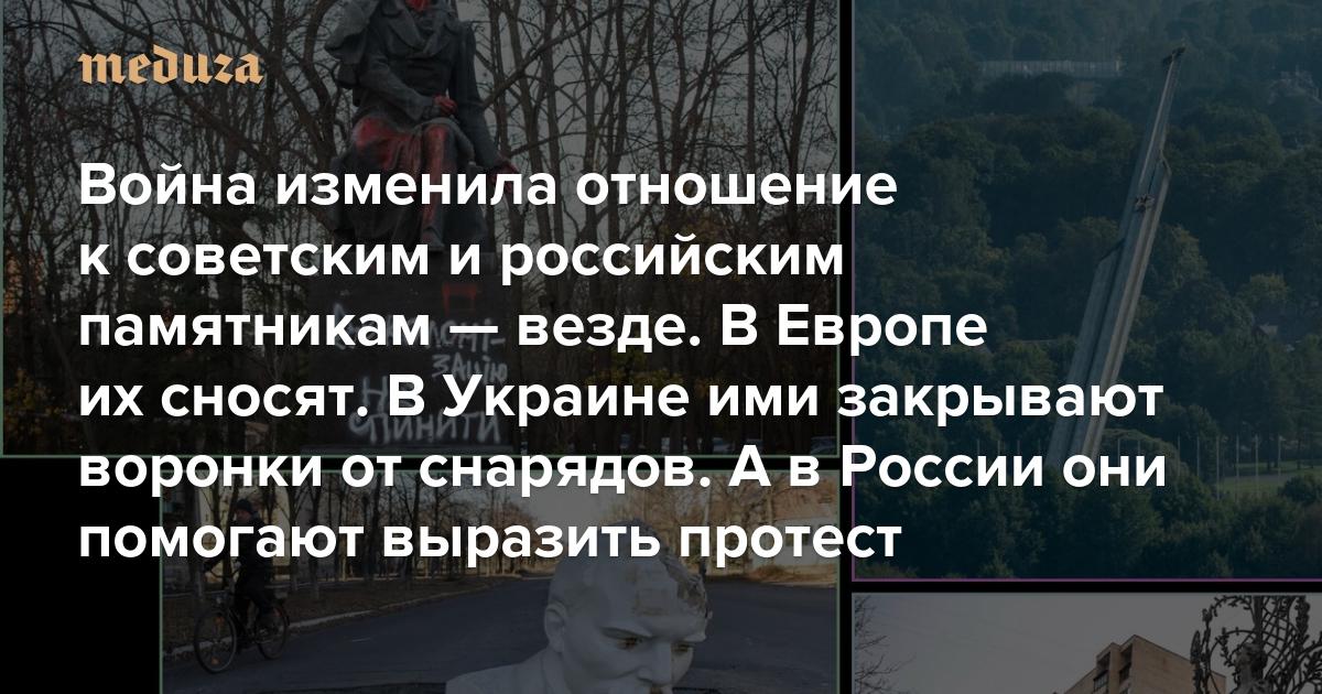 Война изменила отношение к советским и российским памятникам — везде В Европе их сносят. В Украине ими закрывают воронки от снарядов. А в России они помогают (относительно безопасно) выразить протест