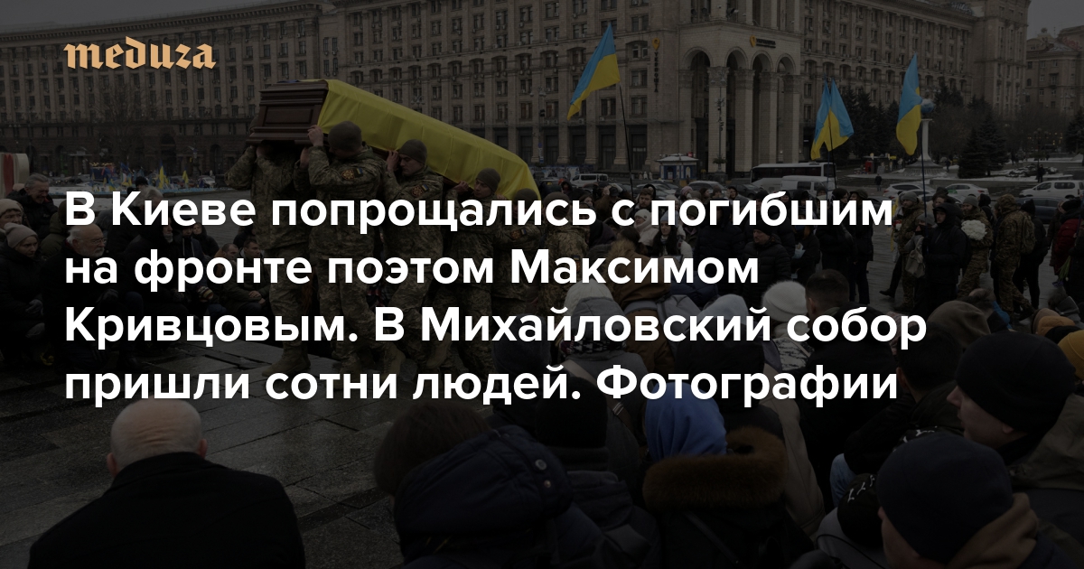 В Киеве попрощались с погибшим на фронте поэтом Максимом Кривцовым. В Михайловский собор пришли сотни людей Шестьсот восемьдесят седьмой день войны. Фотографии