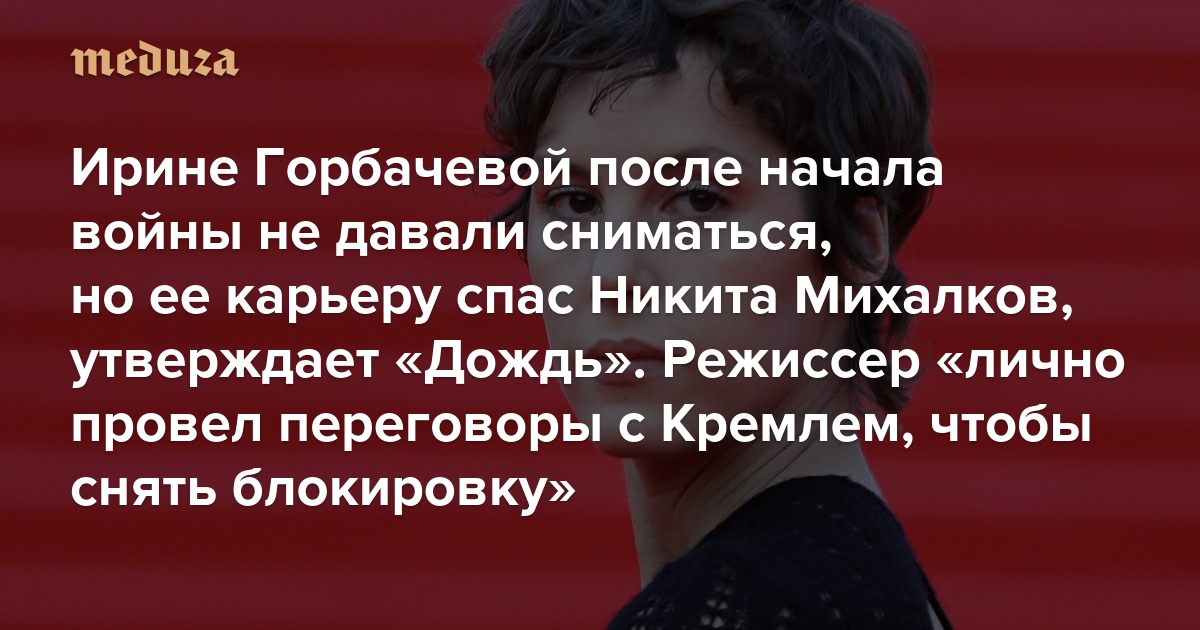 Ирине Горбачевой после начала войны не давали сниматься, но ее карьеру спас Никита Михалков, утверждает «Дождь» Режиссер «лично провел переговоры с Кремлем, чтобы снять блокировку»