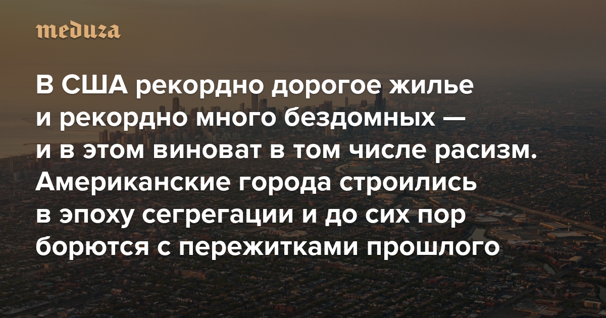 В США рекордно дорогое жилье и рекордно много бездомных— и в этом виноват в том числе расизм Американские города строились в эпоху расовой и социальной сегрегации — и до сих пор борются с пережитками прошлого