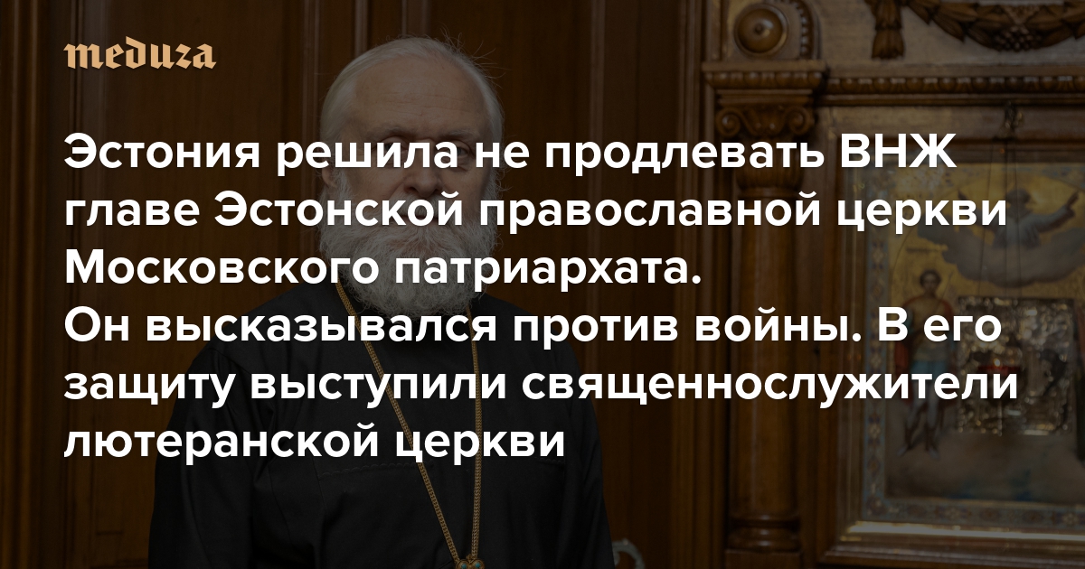 Эстония решила не продлевать ВНЖ митрополиту Евгению — главе Эстонской православной церкви Московского патриархата Он высказывался против войны. В его защиту выступили священнослужители лютеранской церкви