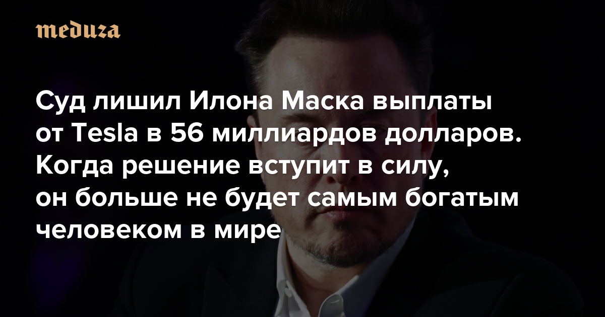 Суд лишил Илона Маска выплаты от Tesla в 56 миллиардов долларов Когда решение вступит в силу, он больше не будет самым богатым человеком в мире