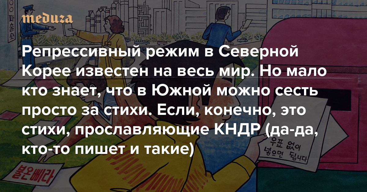 Репрессивный режим в Северной Корее известен на весь мир. Но мало кто знает, что в Южной можно сесть просто за стихи Если, конечно, это стихи, прославляющие КНДР (да-да, кто-то пишет и такие)