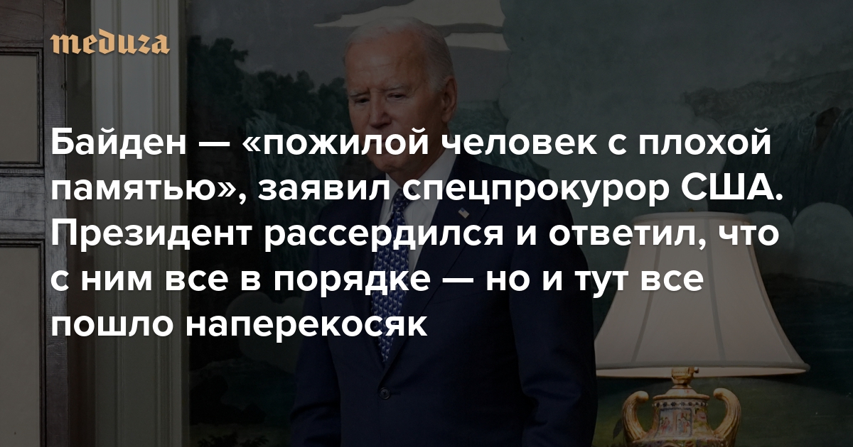 Байден — «пожилой человек с плохой памятью», заявил спецпрокурор США. Президент рассердился и ответил, что с ним все в порядке — но и тут все пошло наперекосяк Рассказываем, почему эту историю обсуждает вся Америка