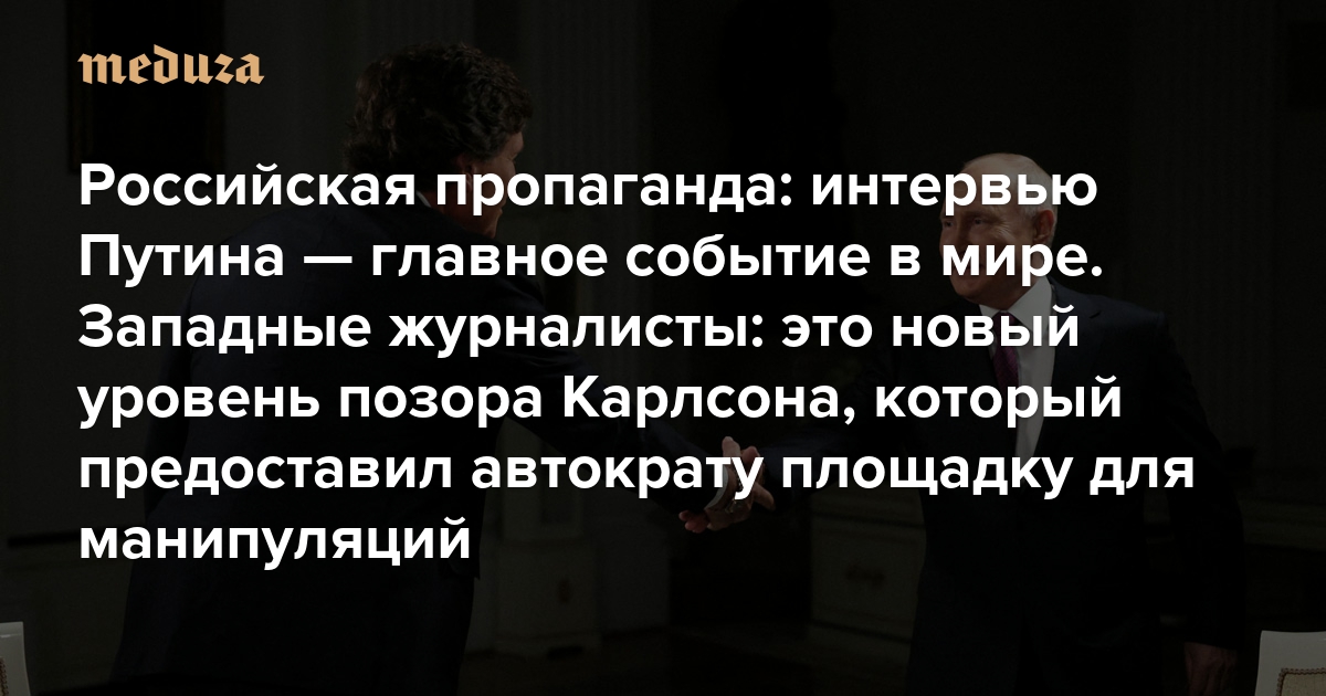 Российская пропаганда: интервью Путина — главное событие в мире Западные журналисты: это новый уровень позора Карлсона, который предоставил автократу площадку для манипуляций