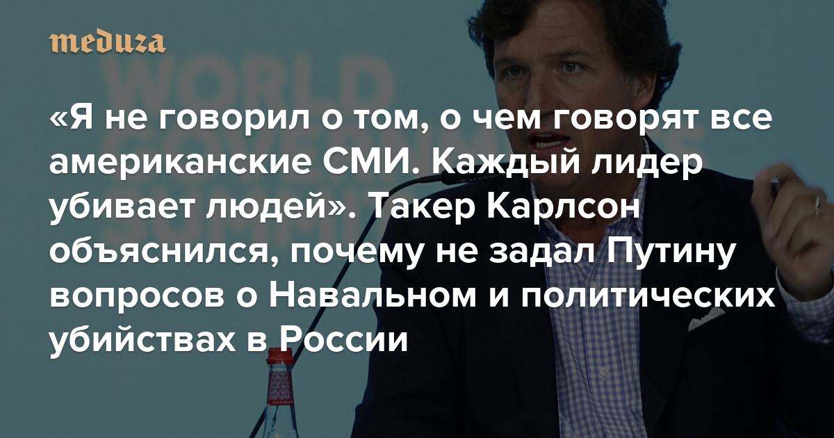 «Я не говорил о том, о чем говорят все американские СМИ. Каждый лидер убивает людей» Такер Карлсон объяснился, почему не задал Путину вопросов о Навальном и политических убийствах в России