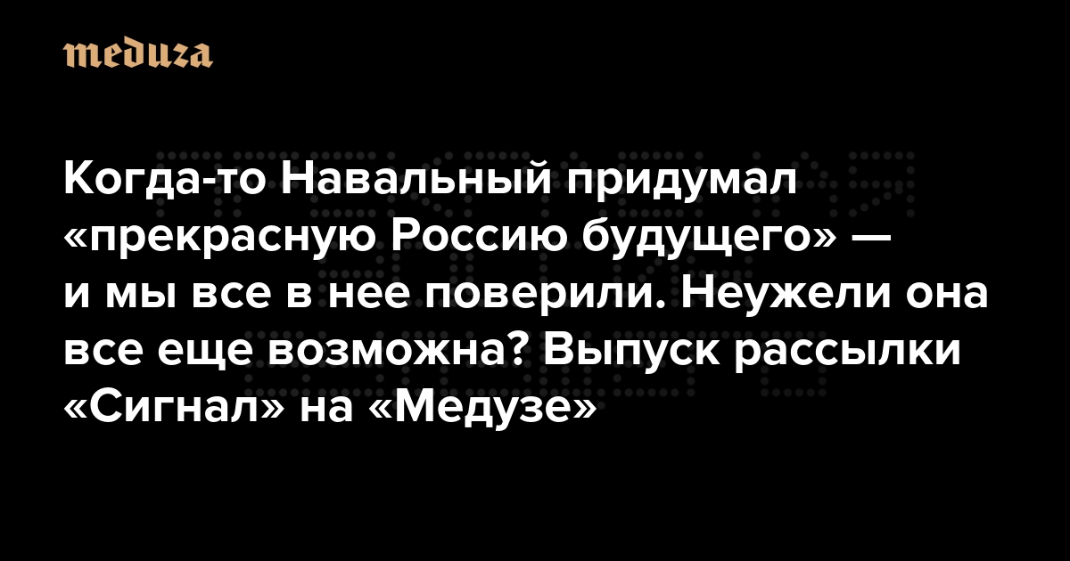 Когда-то Навальный придумал «прекрасную Россию будущего» — и мы все в нее поверили. Неужели она все еще возможна? Выпуск рассылки «Сигнал» на «Медузе»