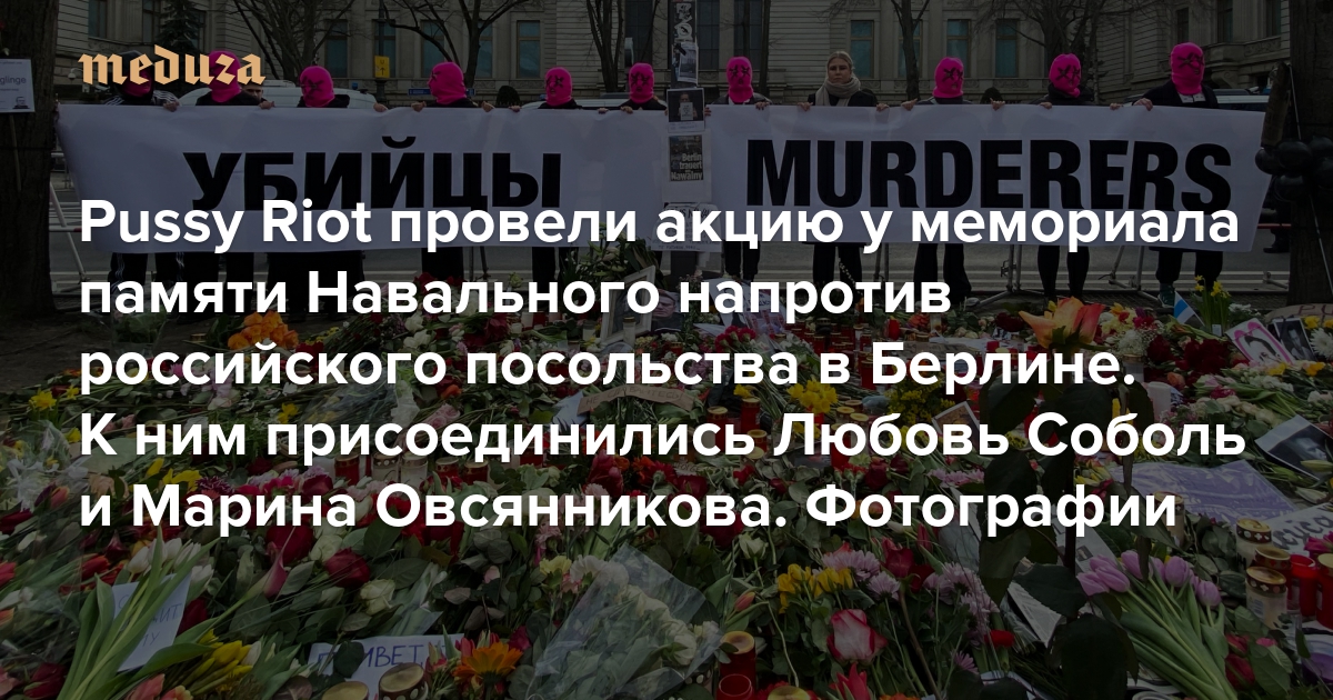 Pussy Riot провели акцию у мемориала памяти Навального напротив российского посольства в Берлине. К ним присоединились Любовь Соболь и Марина Овсянникова. Фотографии