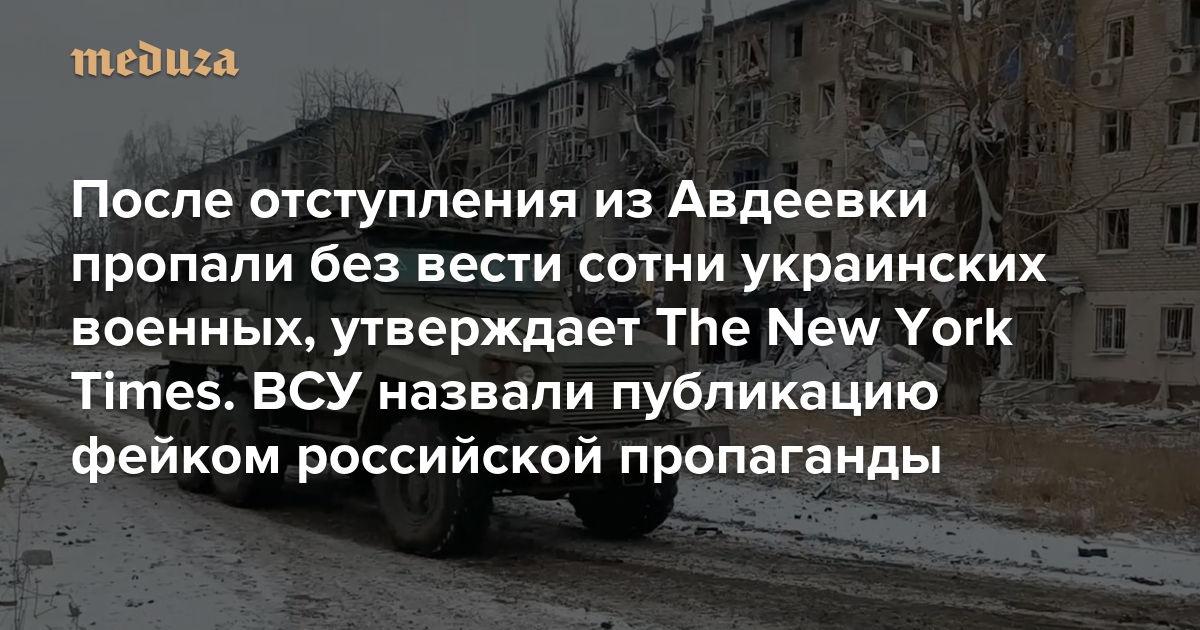 После отступления из Авдеевки пропали без вести сотни украинских военных, утверждает The New York Times. ВСУ назвали эту публикацию фейком российской пропаганды В телеграме появилось видео убийства шестерых украинских пленных в осажденном городе