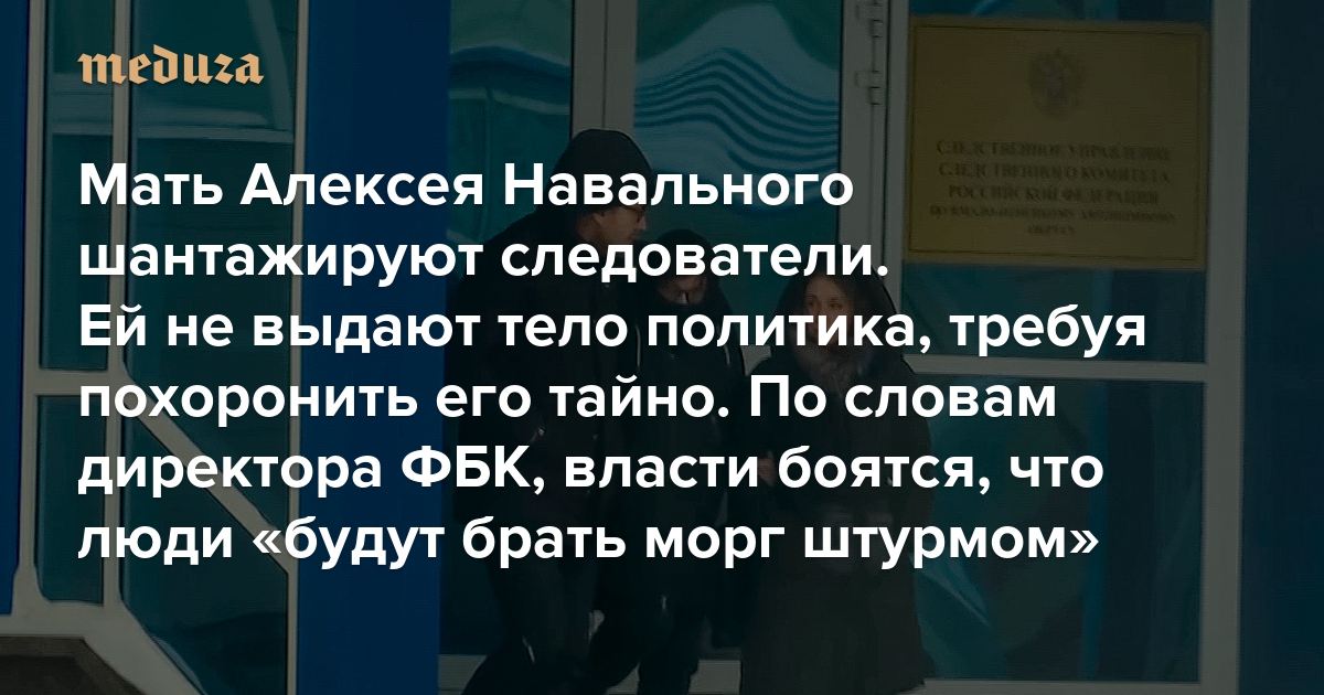 Мать Алексея Навального шантажируют следователи. Ей не выдают тело политика, требуя похоронить его тайно По словам директора ФБК, власти боятся, что люди «будут брать морг штурмом»