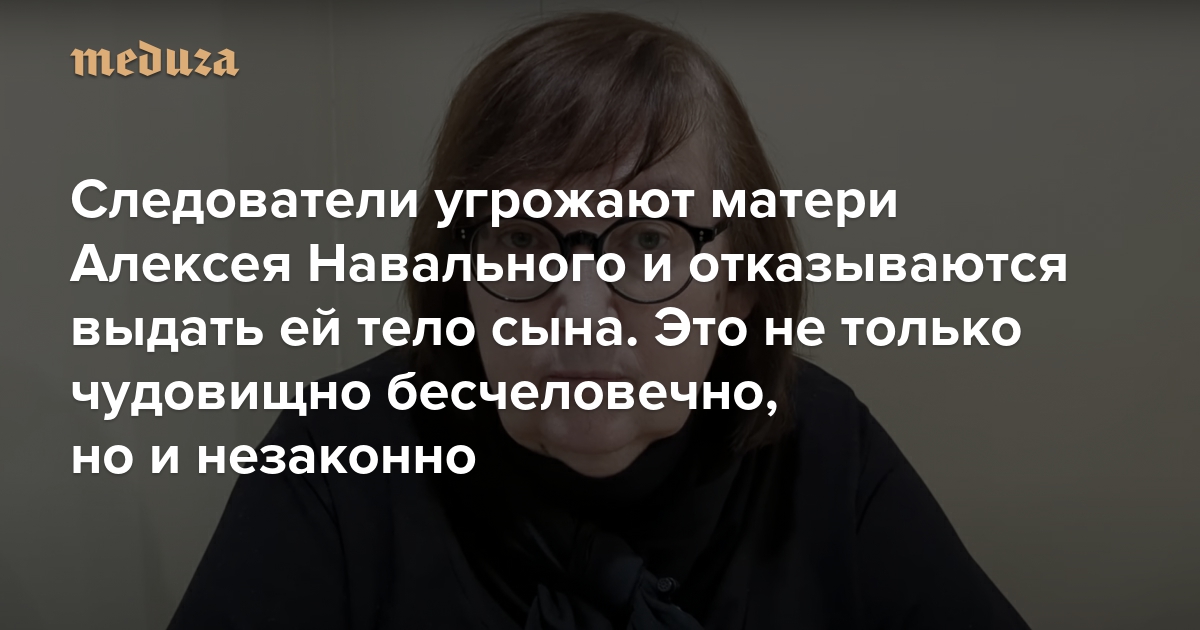 Следователи угрожают матери Алексея Навального и отказываются выдать ей тело сына. Это не только чудовищно бесчеловечно, но и незаконно При работающих законах им грозило бы до 12 лет лишения свободы