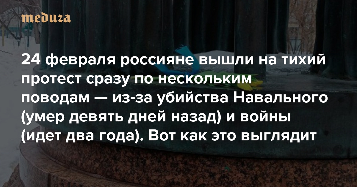 24 февраля россияне вышли на тихий протест сразу по нескольким поводам — из-за убийства Навального (умер девять дней назад) и войны (идет два года) Вот как это выглядит