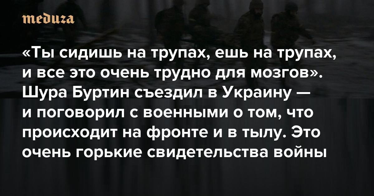 «Ты сидишь на трупах, ешь на трупах, и все это очень трудно для мозгов» Шура Буртин съездил в Украину — и поговорил с военными о том, что происходит на фронте и в тылу. Это очень подробные (и горькие) свидетельства войны
