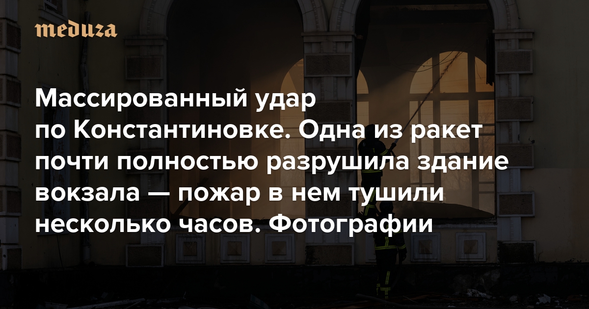 Массированный удар по Константиновке. Одна из ракет почти полностью разрушила здание вокзала — пожар в нем тушили несколько часов Семьсот тридцать второй день войны. Фотографии