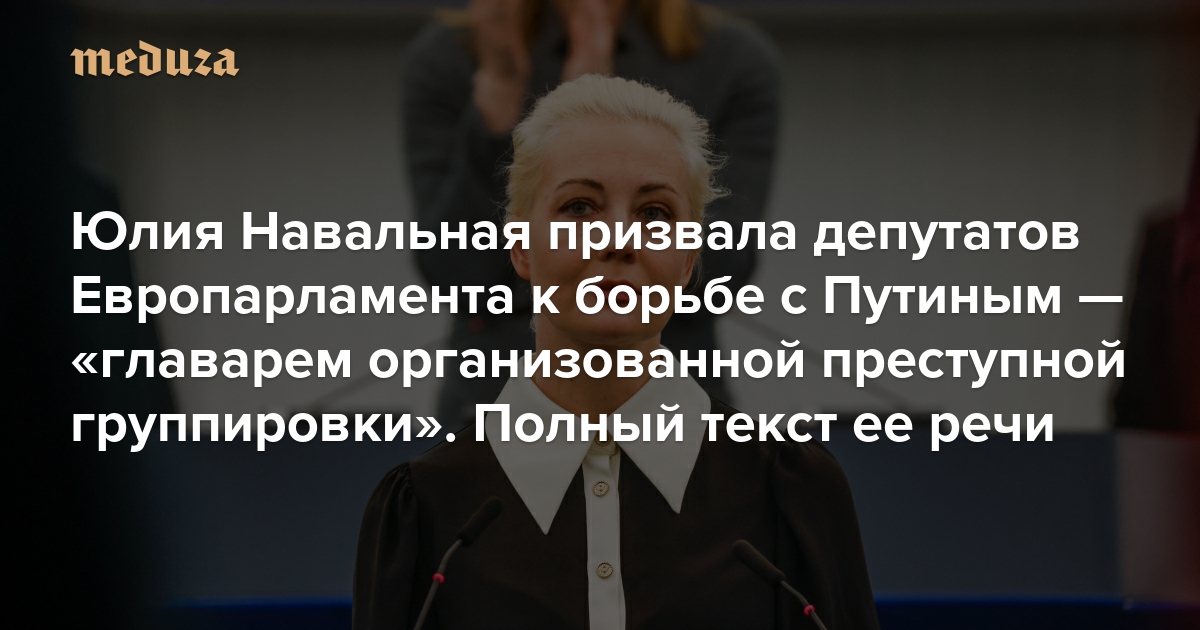 «Я сделаю все, чтобы зло отступило, а прекрасное будущее пришло» Юлия Навальная призвала депутатов Европарламента к борьбе с Путиным — «главарем организованной преступной группировки». Полный текст ее речи