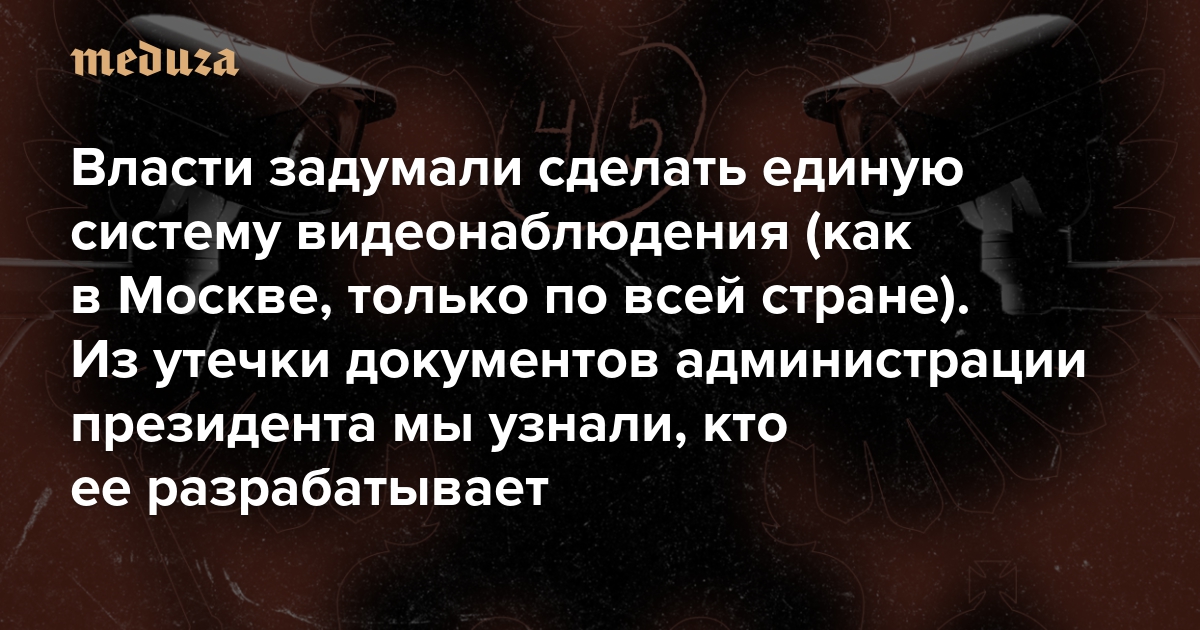 Власти задумали сделать единую систему видеонаблюдения (как в Москве, только по всей стране). Из утечки документов администрации президента мы узнали, кто ее разрабатывает Спойлер: предприятие, максимально близкое к Кремлю