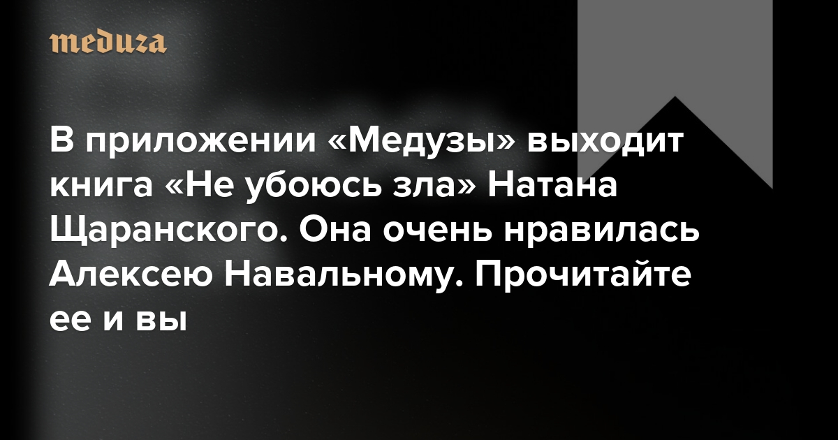 В приложении «Медузы» выходит книга «Не убоюсь зла» советского диссидента и израильского министра Натана Щаранского Она очень нравилась Алексею Навальному. Прочитайте ее и вы