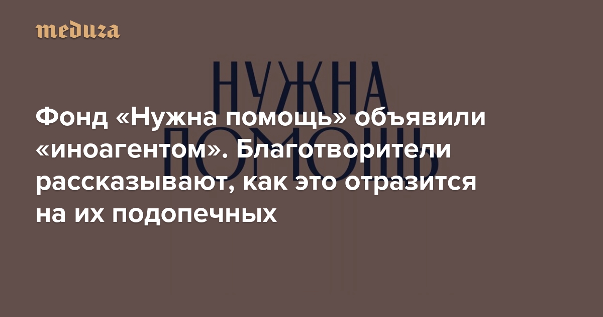«Все сообщество, если честно, в ужасе» Фонд «Нужна помощь» объявили «иноагентом». Благотворители рассказывают, как это отразится на их подопечных