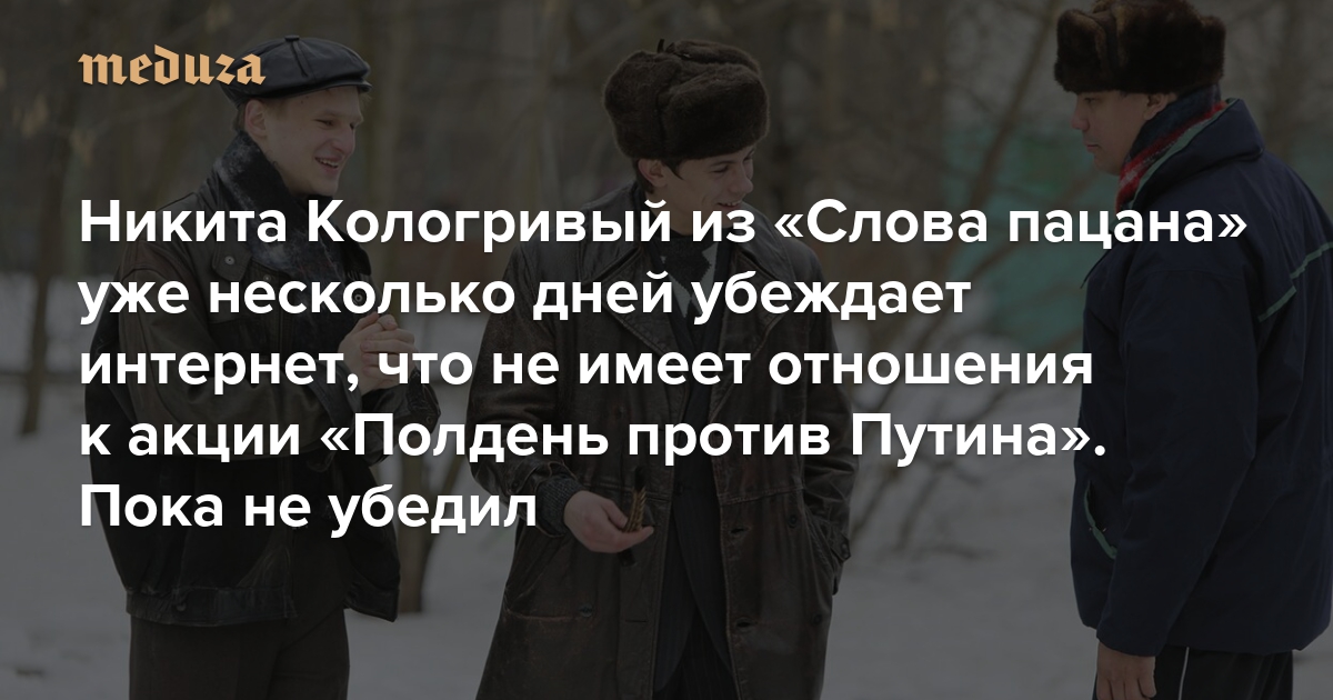 Никита Кологривый из «Слова пацана» уже несколько дней убеждает интернет, что не имеет отношения к акции «Полдень против Путина». Пока не убедил