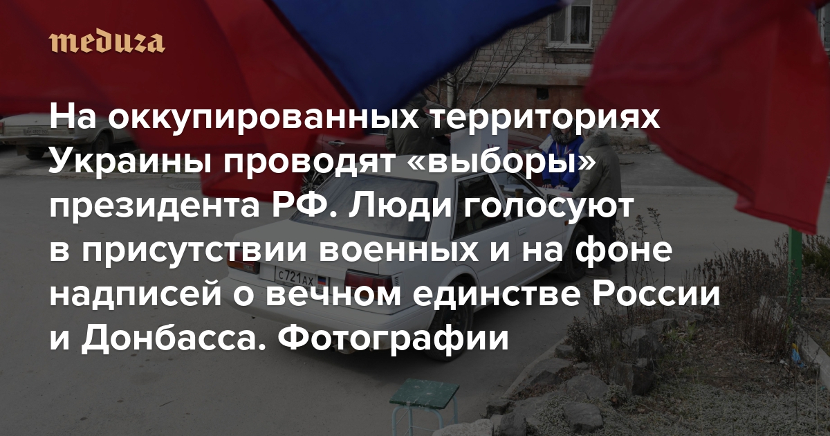 На оккупированных территориях Украины проводят «выборы» президента РФ Люди голосуют в присутствии военных и на фоне надписей о вечном единстве России и Донбасса. Посмотрите, как это происходит