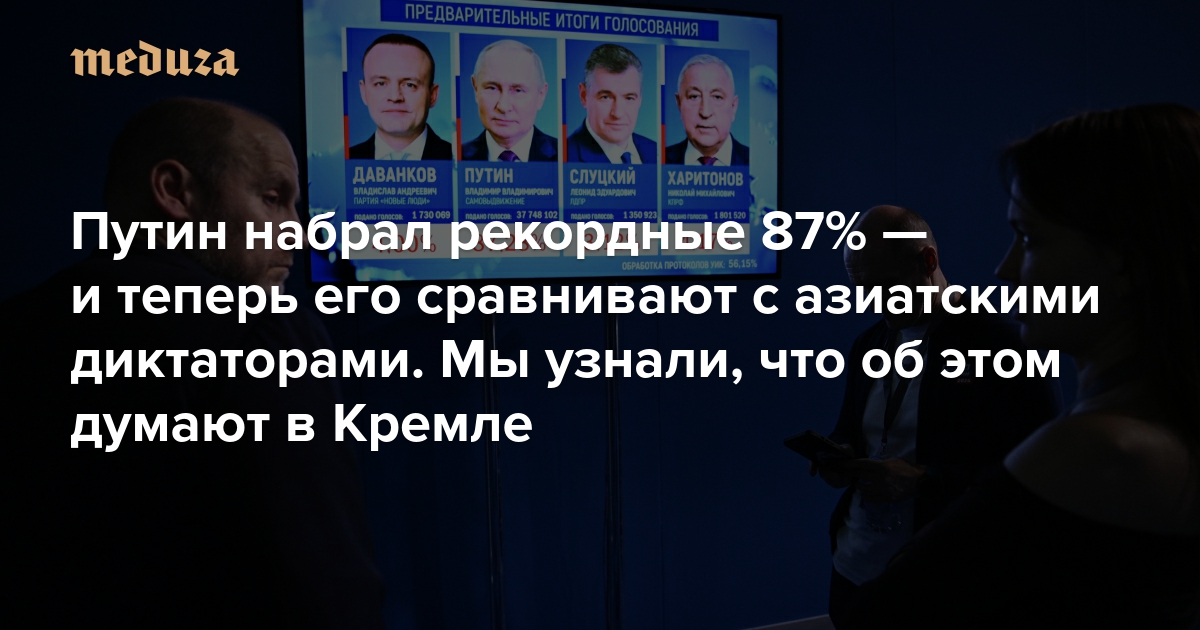 Путин набрал рекордные 87% — и теперь его сравнивают с азиатскими диктаторами. Мы узнали, что об этом думают в Кремле