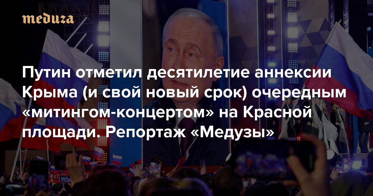 «Люди со всем патриотизмом идут — и в такую задницу!» Путин отметил десятилетие аннексии Крыма (и свой новый срок) очередным «митингом-концертом» на Красной площади. Репортаж «Медузы»