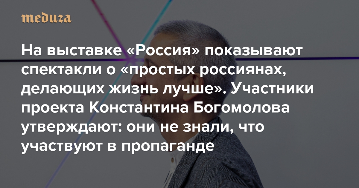 «Вы не чувствовали запах гнили, когда получили предложение?» На выставке «Россия» показывают спектакли о «простых россиянах, делающих жизнь лучше». Участники проекта Константина Богомолова утверждают: они не знали, что участвуют в пропаганде