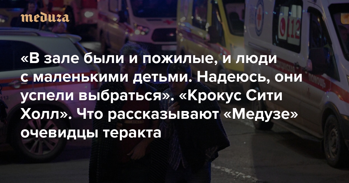 «В зале были и пожилые, и люди с маленькими детьми. Надеюсь, они успели выбраться» «Крокус Сити Холл». Что рассказывают «Медузе» очевидцы теракта