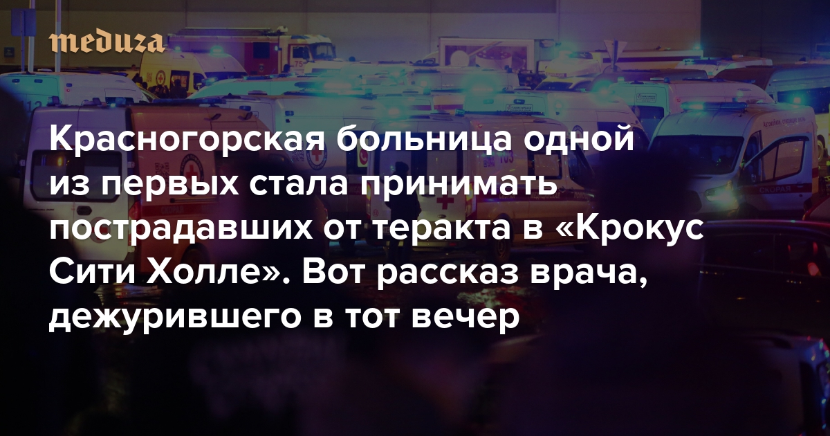 Сигнал о том, что к нам везут больных, поступил часов в девять вечера — так я и узнал о случившемся. Ну и потом уже, конечно, в телеграм-каналах начали появляться ролики [из «Крокус Сити Холла»].