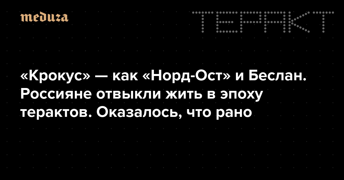 «Крокус» — как «Норд-Ост» и Беслан. Россияне отвыкли жить в эпоху терактов. Оказалось, что рано Выпуск рассылки «Сигнал» на «Медузе»