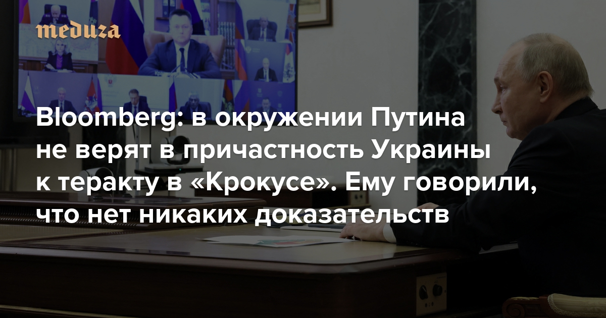 Bloomberg: в окружении Путина не верят в причастность Украины к теракту в «Крокусе» Ему говорили, что нет никаких доказательств