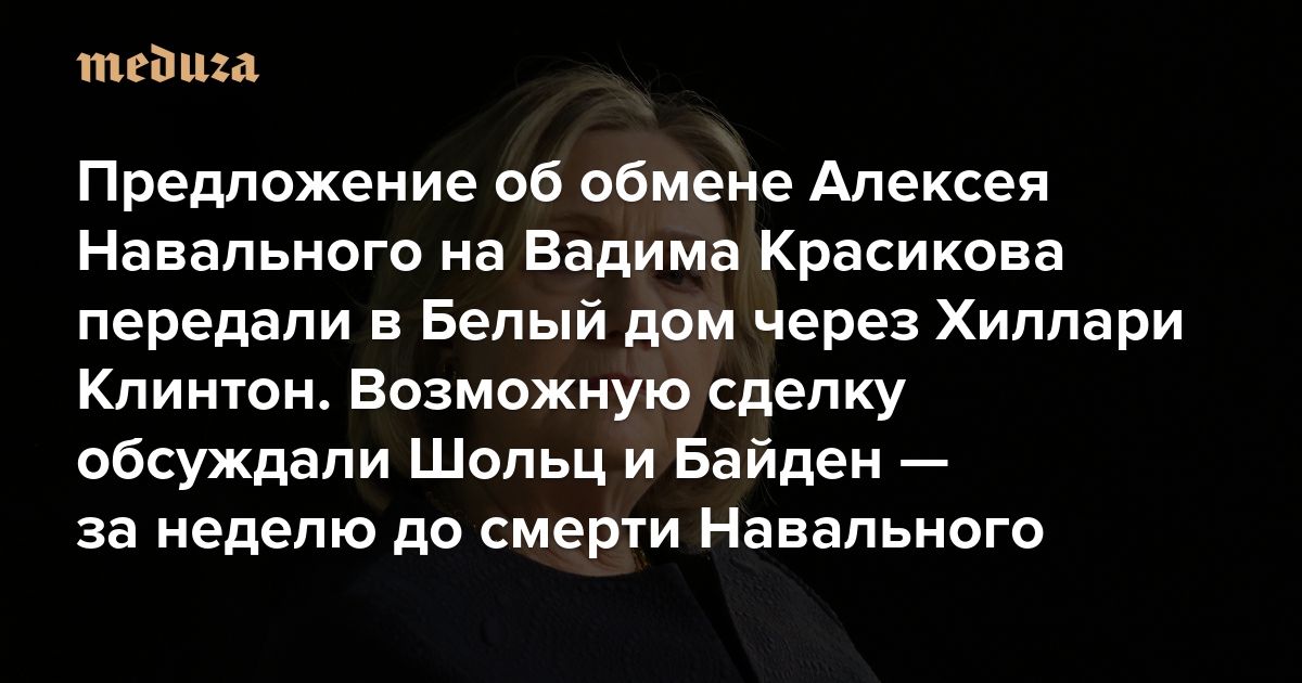 Предложение об обмене Алексея Навального на Вадима Красикова передали в Белый дом через Хиллари Клинтон Возможную сделку обсуждали Шольц и Байден — за неделю до смерти Навального