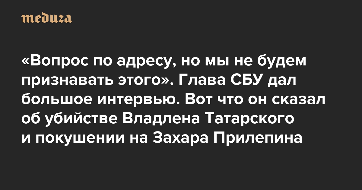 «Вопрос по адресу, но мы не будем признавать этого» Глава СБУ дал большое интервью. Вот что он сказал об убийстве Владлена Татарского и покушении на Захара Прилепина