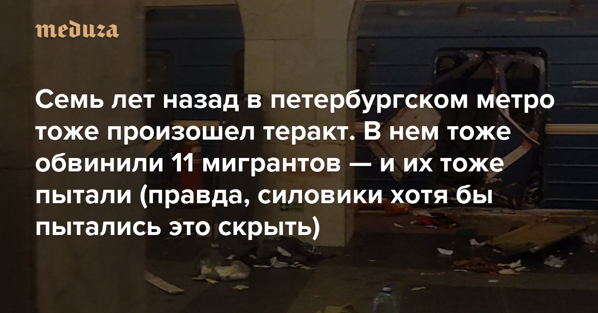 Семь лет назад в петербургском метро тоже произошел теракт. В нем тоже обвинили 11 мигрантов — и их тоже пытали (правда, силовики хотя бы пытались это скрыть) Рассказываем, чем все закончилось тогда — и чего стоит ждать сейчас